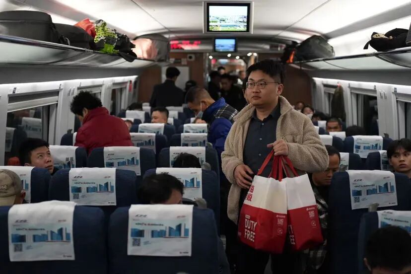 来自湖南株洲的务工人员老徐,手里提着一个大编织袋,里面装着给家人买的年货。“昨天专门给孩子买了个学习机,在深圳工地干了大半年,就盼着早点回家过年。”他说,虽然坐高铁比普通火车贵一些,但能早点到家,多花点钱也值得。