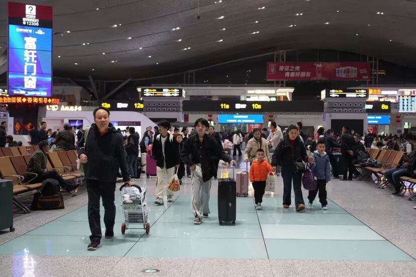 “在深圳忙碌了两年,今年终于能早点回家。”李瑶一手推着行李箱,一手拉着睡眼朦胧的儿子, 跟着人群往站台走去,“爸妈上周就开始盼着了,昨天还发消息问我想吃什么,说要给我炖排骨。”李瑶告诉记者,为了赶这趟首班车,她凌晨四点就起床了,虽然没睡够,可一想到再过3个小时就能见到家人,浑身都有劲儿。